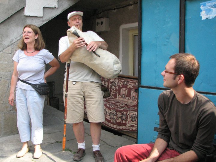 В китния си дом в Момчиловци Мейс и Селин Мюлер веселят гостите си с песни и свирни на гайда.